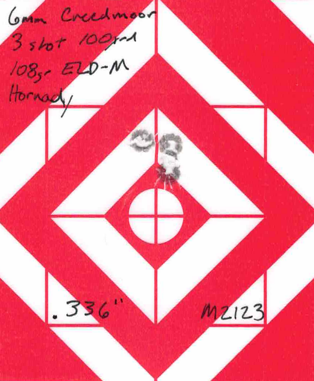 Group Size: .336” with 108gr ELD-M Hornady Ammo