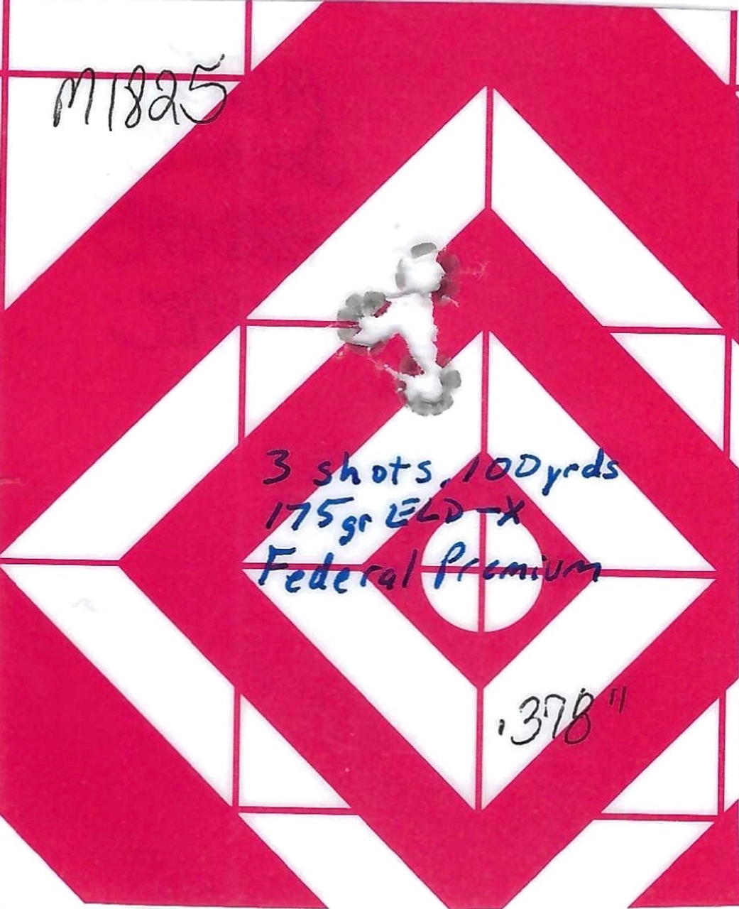 Group Size: .378” with 175gr ELD-X Federal Premium Ammo