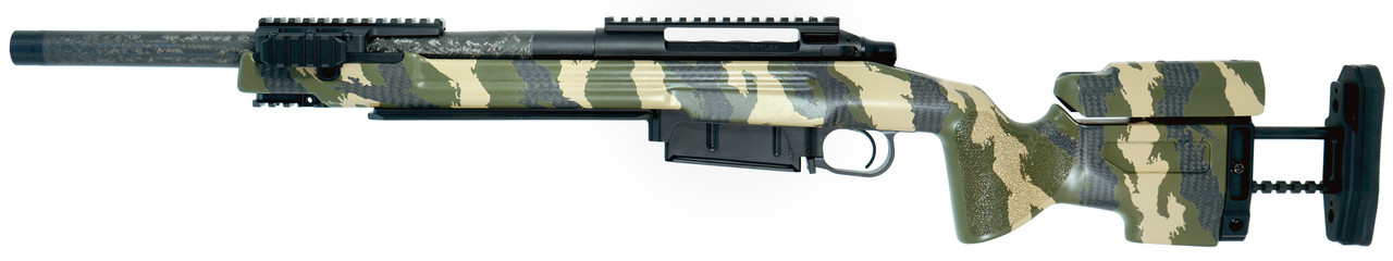 The Shadowstrike Ti7 sets a new standard in 7mm backcountry rifles. Crafted for dedicated hunters on the move, it combines a lightweight titanium action, Manners Night Stalker adjustable stock, and a suppressor-ready 16.5" Proof Research carbon fiber barrel. The result is consistent ½-MOA accuracy in the harshest environments—all while remaining exceptionally compact and uncompromisingly light.