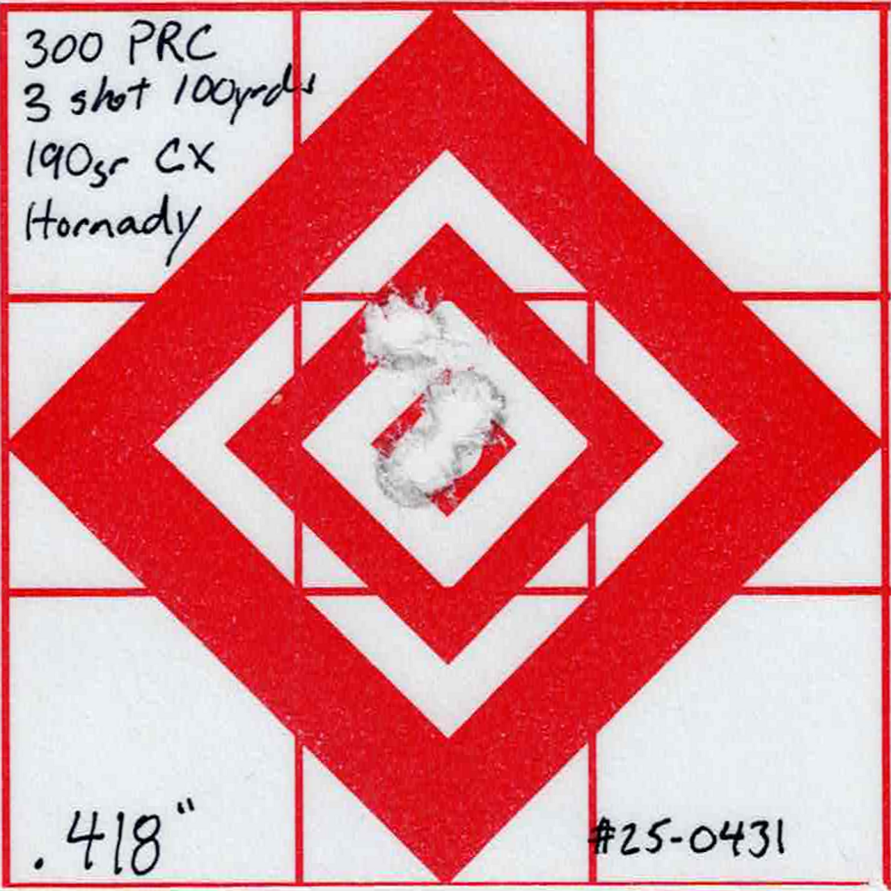 As with every Hill Country Rifle, accuracy is tested and verified with factory ammunition and you'll receive the 100 yard target your rifle achieved with a real human shooting off of a front and rear bag rest.