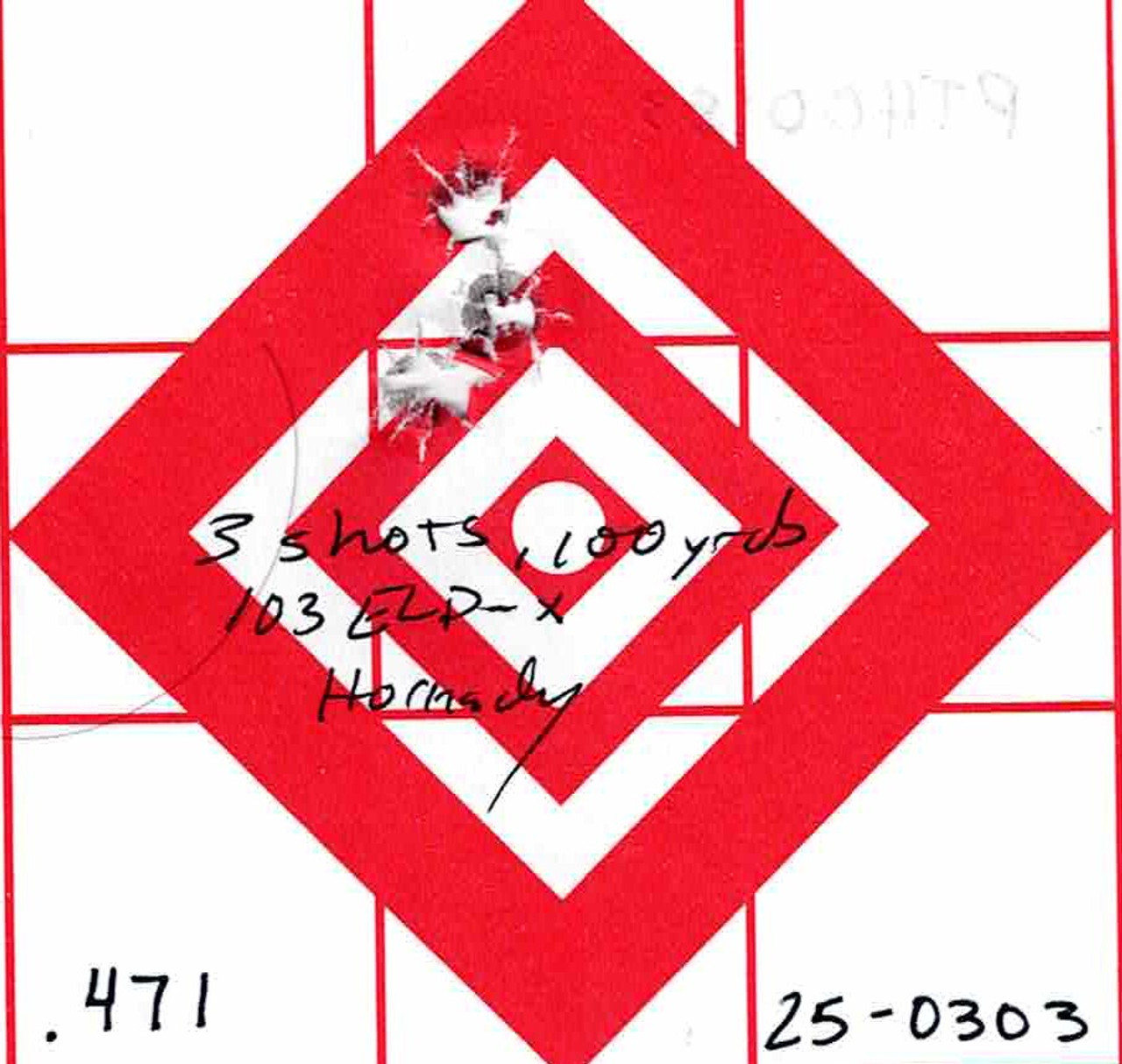 Group: 3-shots at 100 yards .471" with 103gr ELD-X Hornady Ammunition