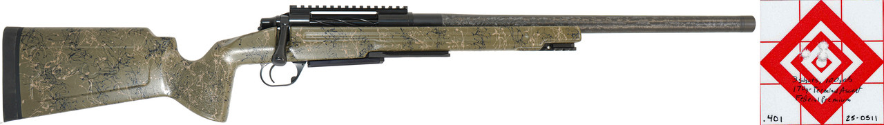 As with every Hill Country Rifle, accuracy is tested and verified with factory ammunition and you'll receive the 100 yard target your rifle achieved with a real human shooting off of a front and rear bag rest.