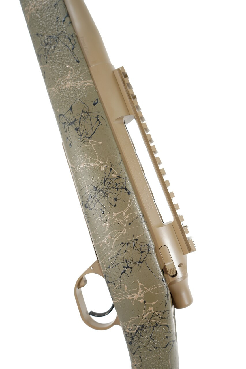 Stock: HCR Rifleman with Adjustable Comb in Custom Olive with Tan and Black Web, 1" Decelerator Pad, 1 rear sling stud, HCR bi-pod rail