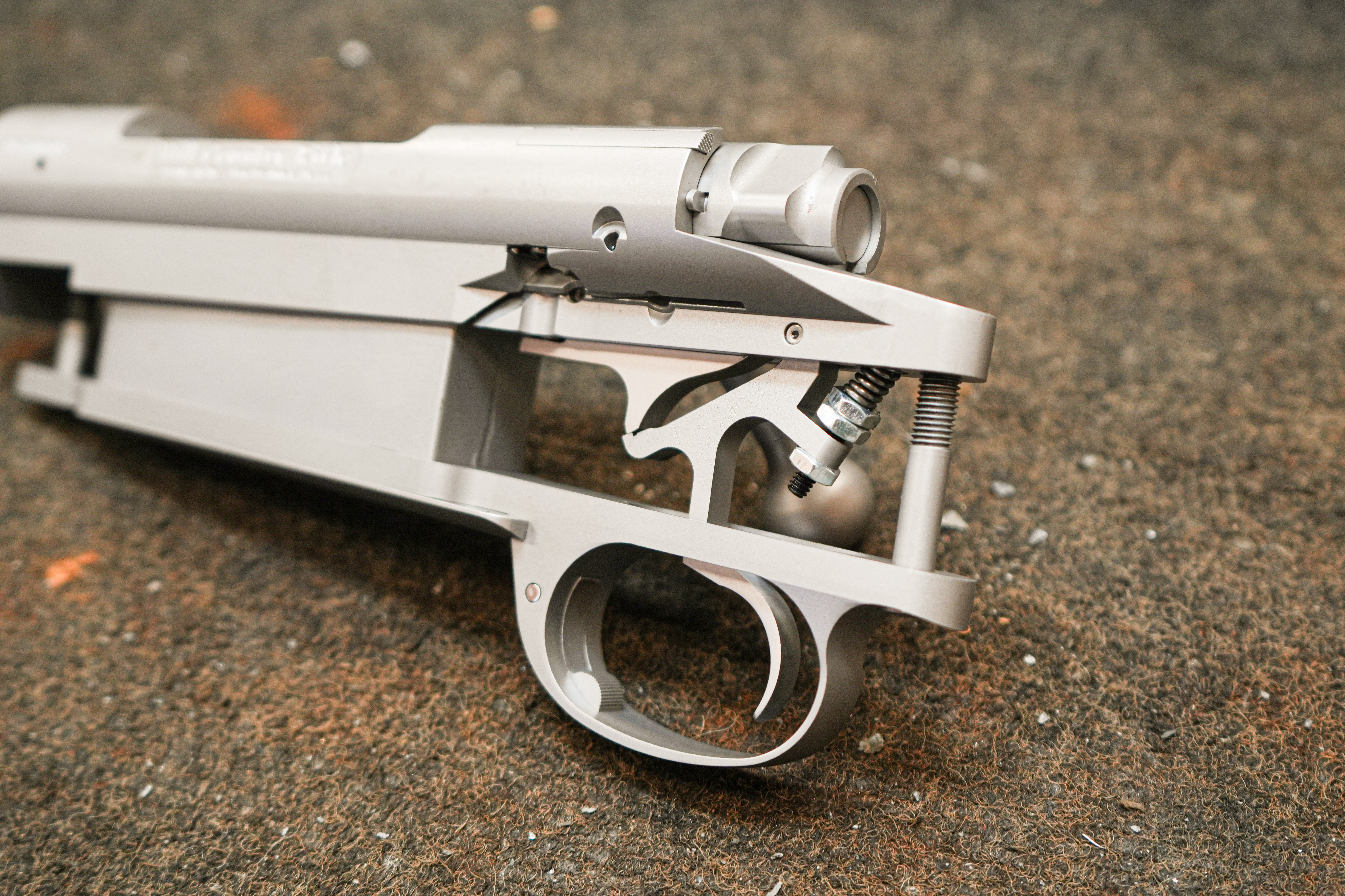 The Safari trigger is what we refer to as a “Skeleton trigger”. The trigger shoe and sear are one piece and there is a single large spring that controls pull weight. These parts are not in any kind of trigger housing. They are exposed like the bones of a skeleton. Why is this a good thing? I don’t care if your rifle falls out of a canoe into a river and comes up muddy and wet, or is covered in dust in the back of a Land Rover after days of driving the African plains. The trigger is protected