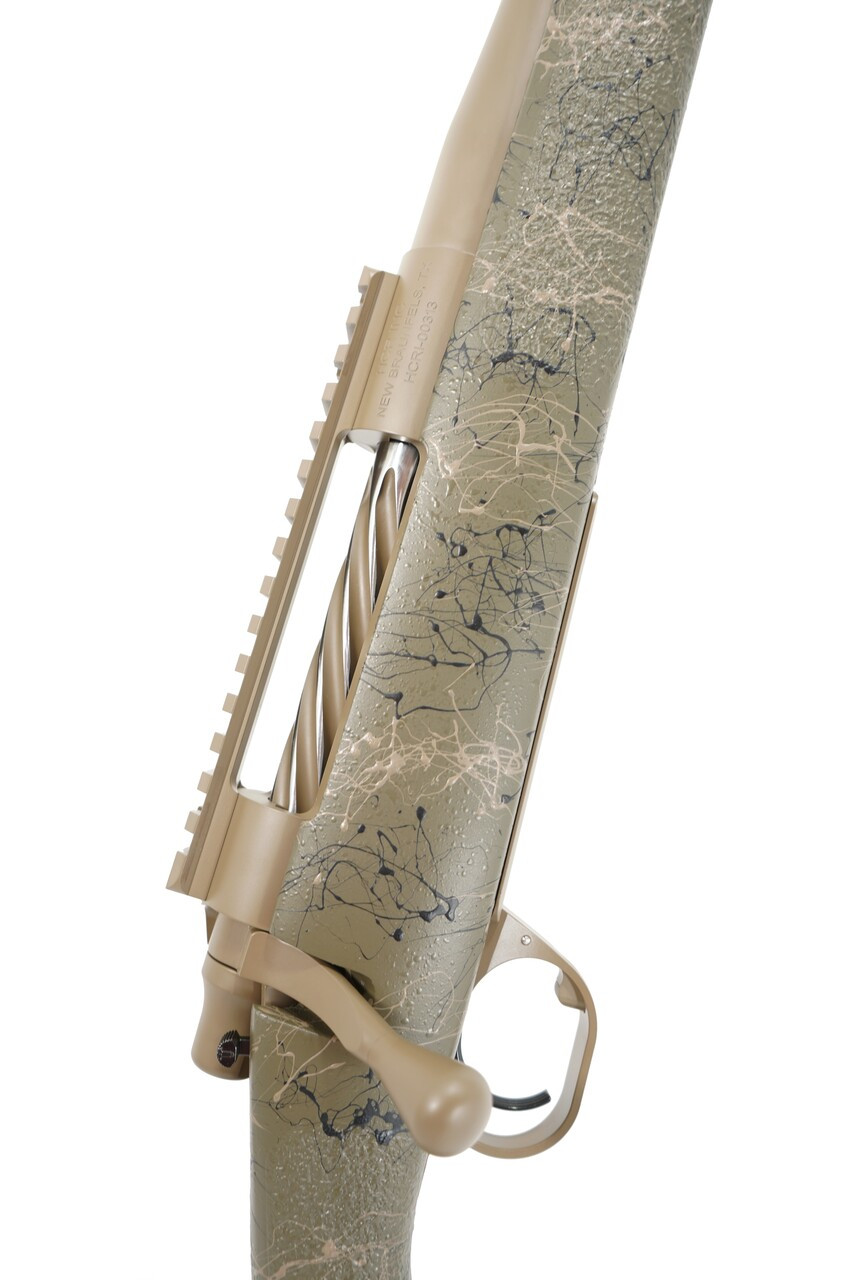Stock: HCR Rifleman with Adjustable Comb in Custom Olive with Tan and Black Web, 1" Decelerator Pad, 1 rear sling stud, HCR bi-pod rail
